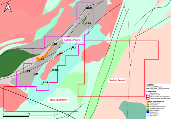 On the newly granted Serihio and Okroyou permits early-stage exploration programs will commence in 2026.