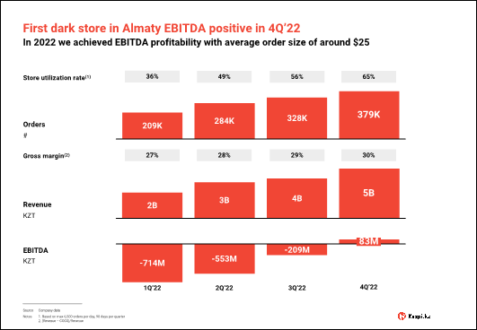 · First dark store in Almaty EBITDA positive within 5 quarters. Having fine-tuned business model economics, nationwide rollout plan now in place to enter $12 billion plus grocery market.