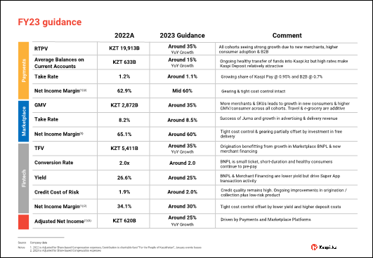 · We're working hard to deliver a good 2023 and even considering ongoing macro volatility and significantly higher funding costs, currently expect to grow Kaspi.kz 2023 adj. net income by around 25% year-over-year.