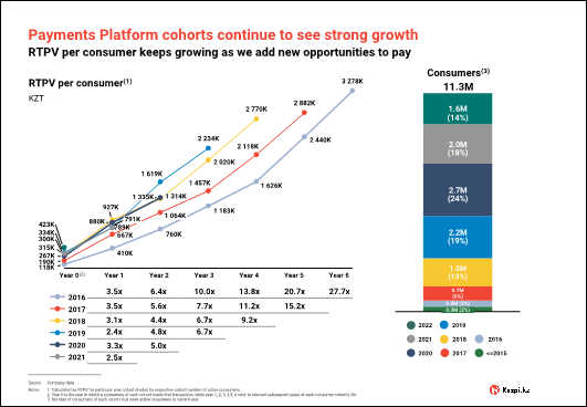 Looking into the medium-term, Payments Platform cohort analysis continues to show strong growth across every consumer cohort. Existing consumers keep spending more with us and as we add more merchants and opportunities to transact, fast growth can be sustained. Kaspi B2B increases our addressable market further. We will stay disciplined on costs, ensuring strong top-line trends, drop through to the bottom-line. As a result, we remain extremely positive about the growth outlook for Payments Platform in 2023 and beyond.