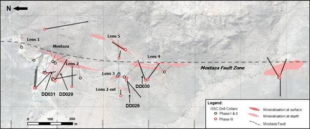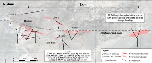 · Within the Lens 3 - 5 zone, DD026 and DD030 confirm continuation of the mineralised trend southward, with lens-style alteration and mineralisation consistent with extensions of the Mostaza system: