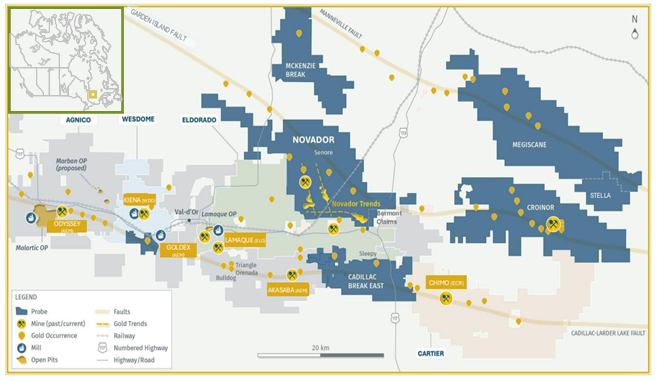 Figure 1 - Probe's projects including Novador and other projects in Val d'Or, Quebec in Canada