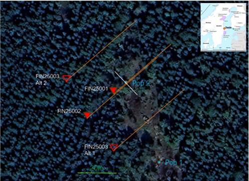Subsequent to this sampling, Alba commissioned a specialist geophysics contractor to carry out a ground-based geophysical survey at Finnsbo. The results of the survey strengthened the indications that the more unique "POP 2" style of high-grade gold, copper and rare earth element ("REE") mineralisation is of magmatic origin and related to the intrusive tonalite. This confirmed the Company's thinking that the next stage of field work should focus on core drilling the contact zone starting at the POP 2 location and stepping out towards the southeast, seeking continuity of high-grade gold, copper and rare earth mineralisation. This is the objective of the present drilling campaign.
