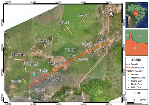 Drilling results from previous programmes also highlight the Project's potential. At the East Traira target, hole ETR_DDH01 intersected 5.0 metres at 5.48 g/t Au, including 1.0 metre at 18.81 g/t Au and 3.0 metres at 8.77 g/t Au. Historical trenching has returned equally encouraging results, including 3.8 metres at 12.5 g/t Au and 2.1 metres at 19.3 g/t Au. Paranaíta is considered to be open-pittable, with six high-priority zones already identified, and is underlain by a porphyry-epithermal magmatic-hydrothermal system, offering significant geological upside.